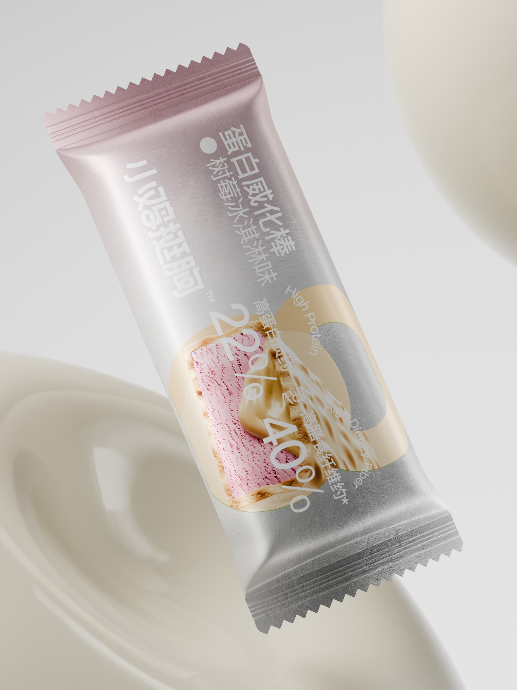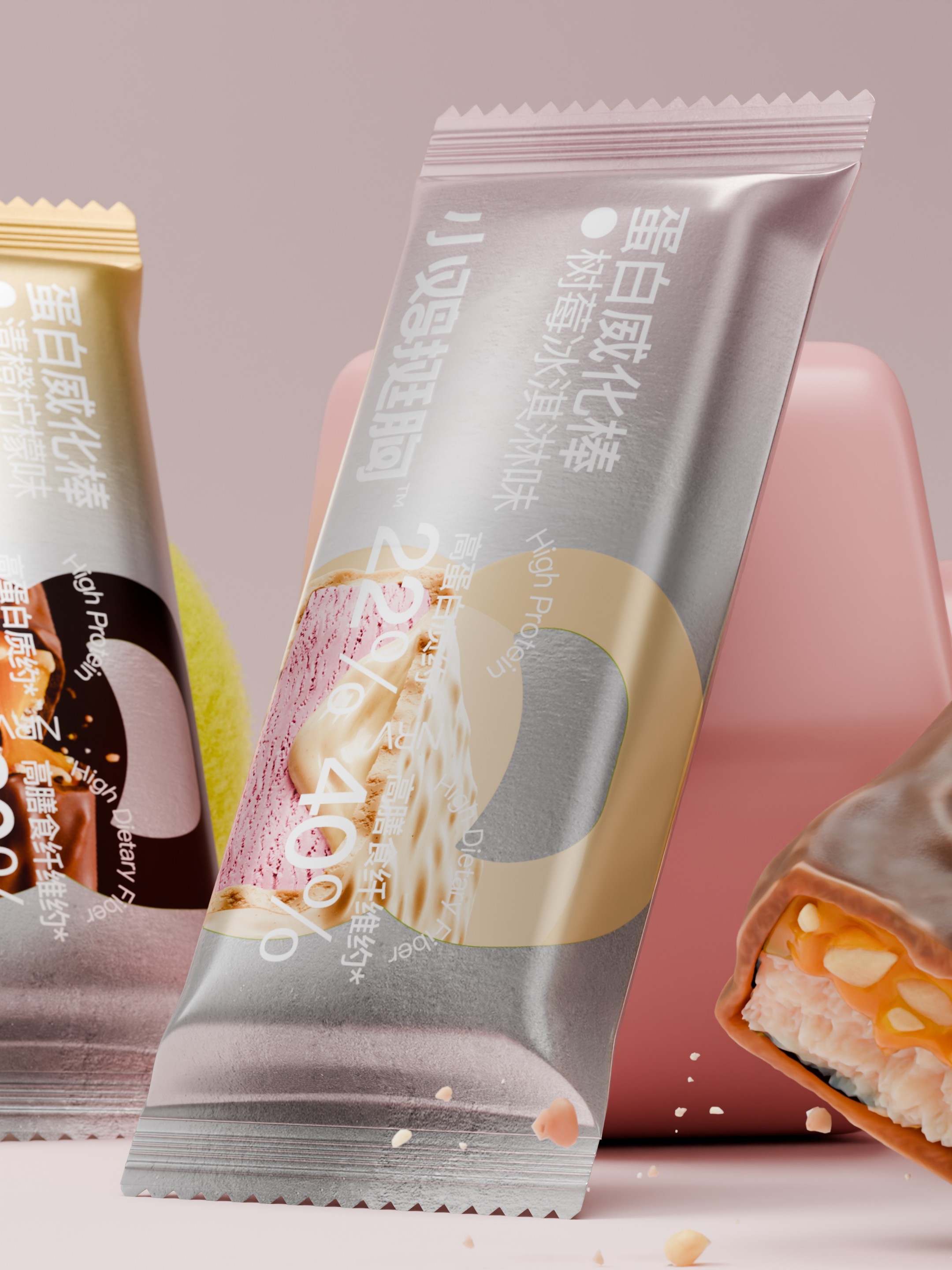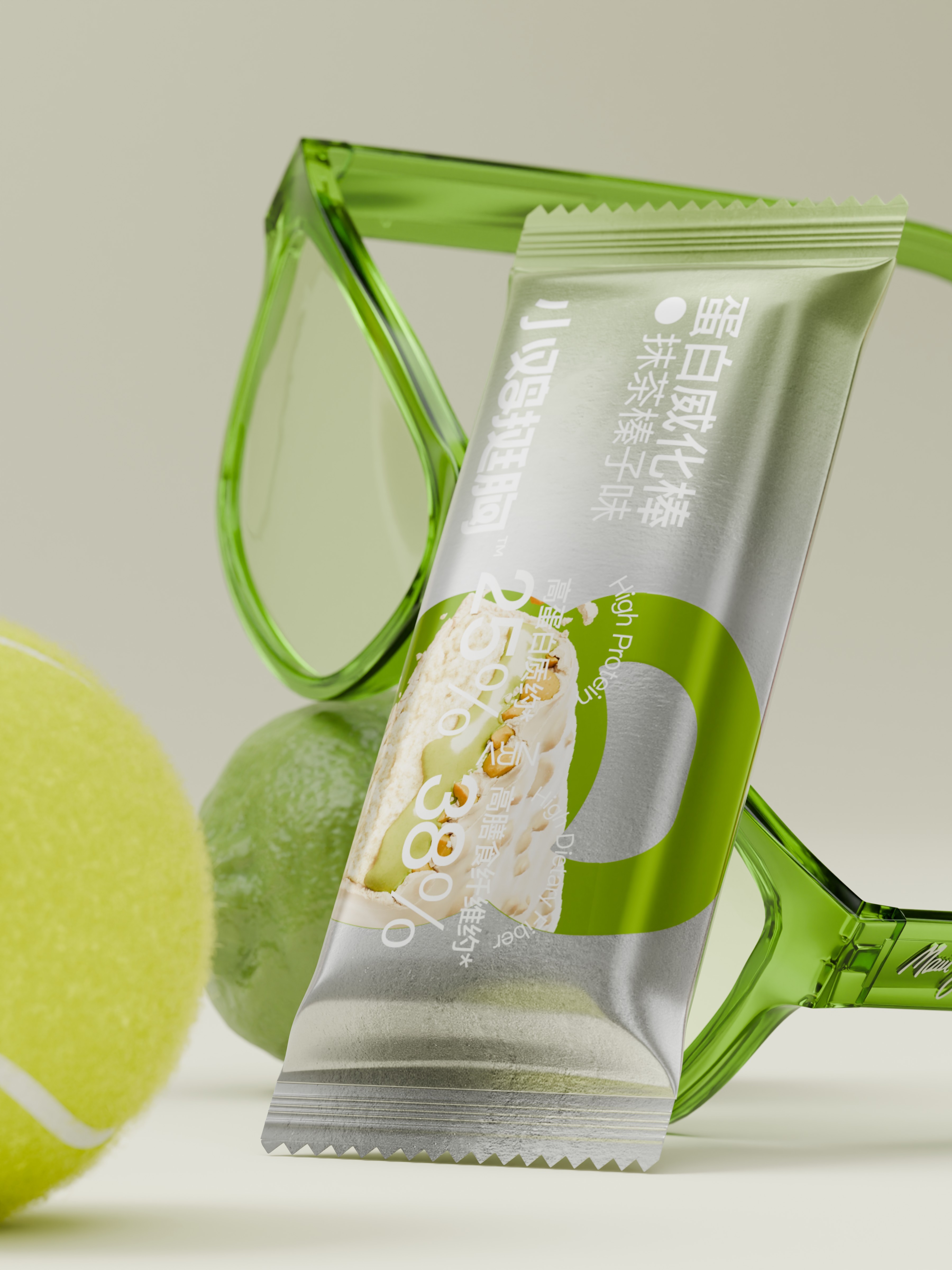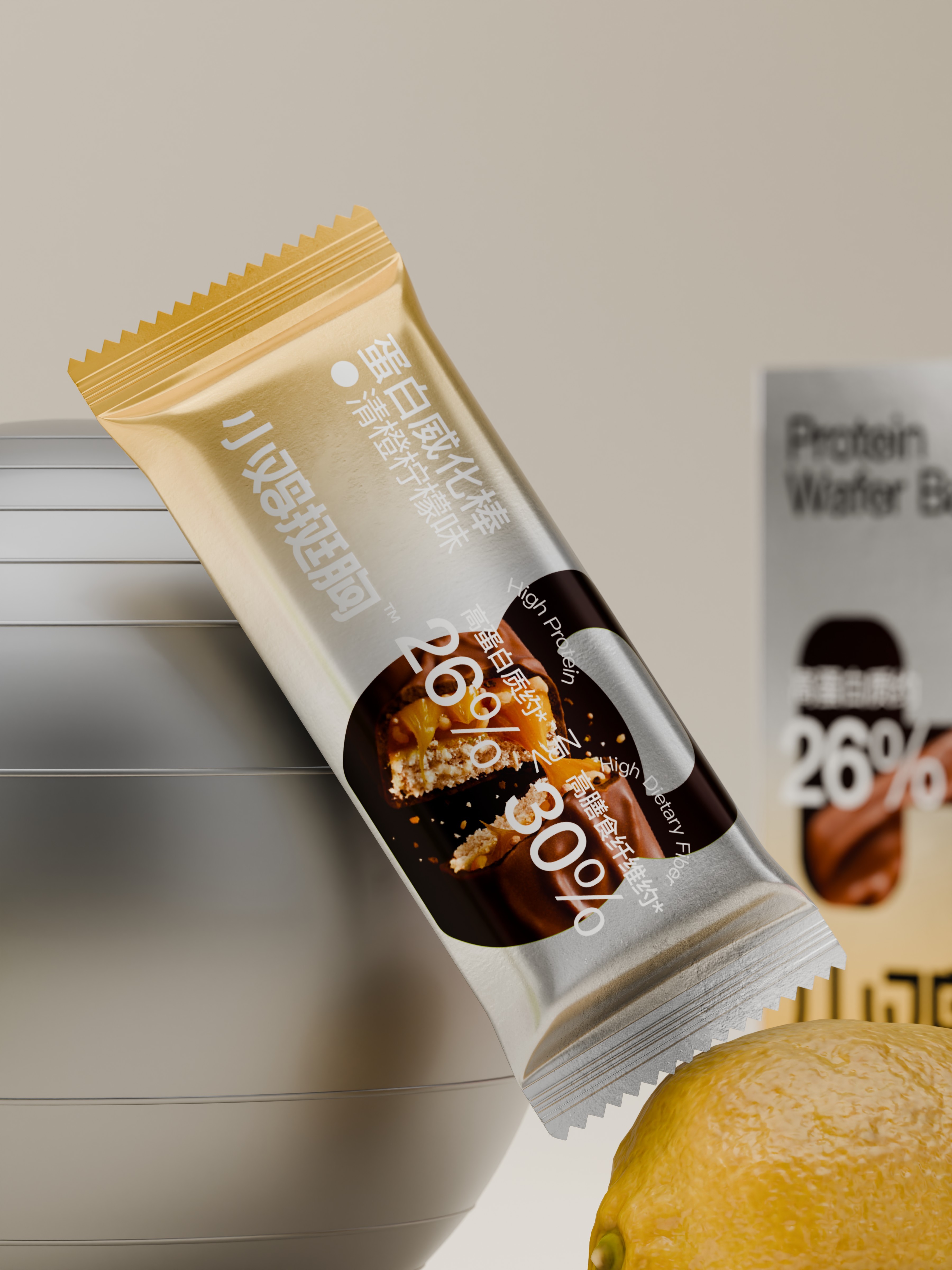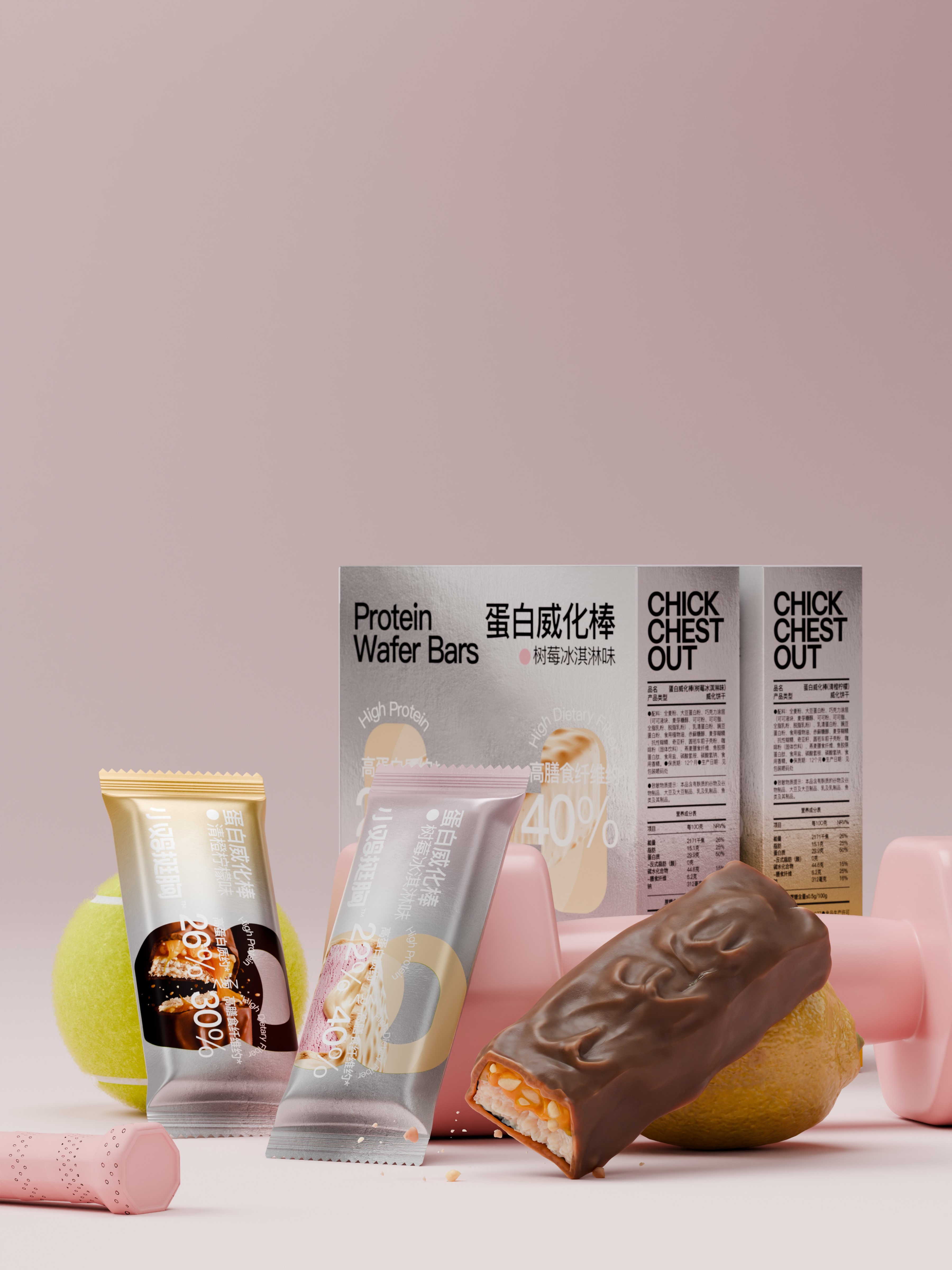 把壶铃,哑铃所代表的高频生活化的运动场景,提炼出符号标签运用到包装,让用户对蛋白棒的食用场景一目了然。